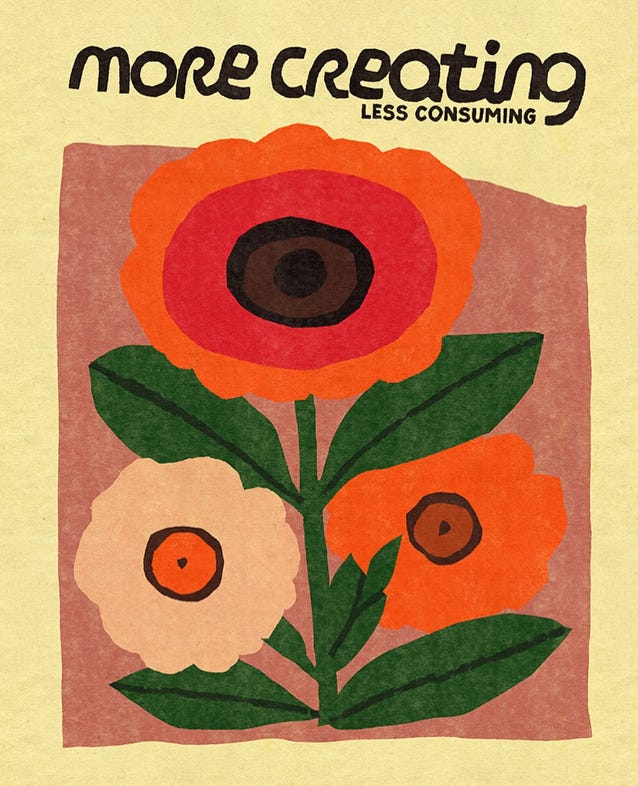 more creating less consuming (below) by Lebanese artist Anisa Makhoul, follow and support